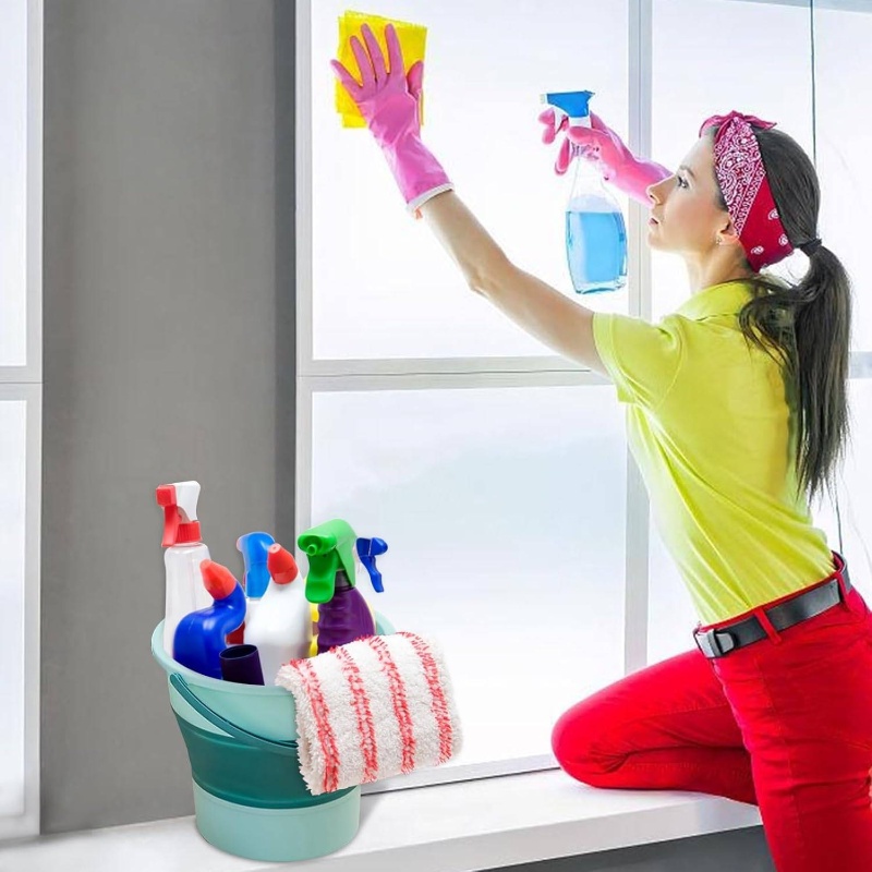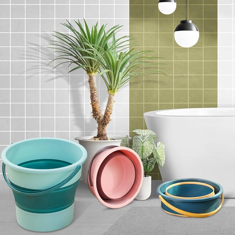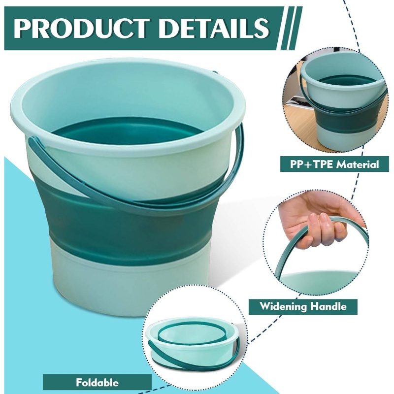 2pcs Collapsible Buckets with Sturdy Collapsible Design - Heavy-Duty Foldable 1.3 Gal (5L) & 4.5 Gal (17L) Capacity, Space-Saving Green Buckets for Household, Car Wash, Camping, Beach, Fishing, Mop Bucket with Sturdy Handle & Spill-Resistant Lid