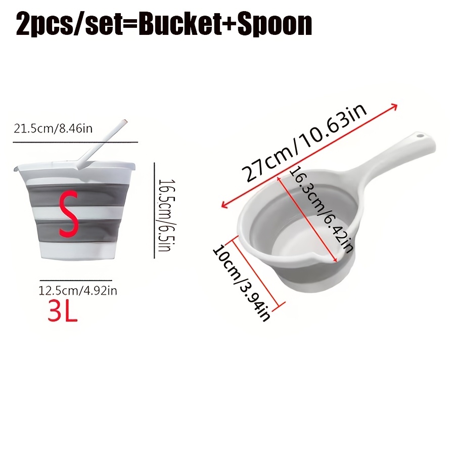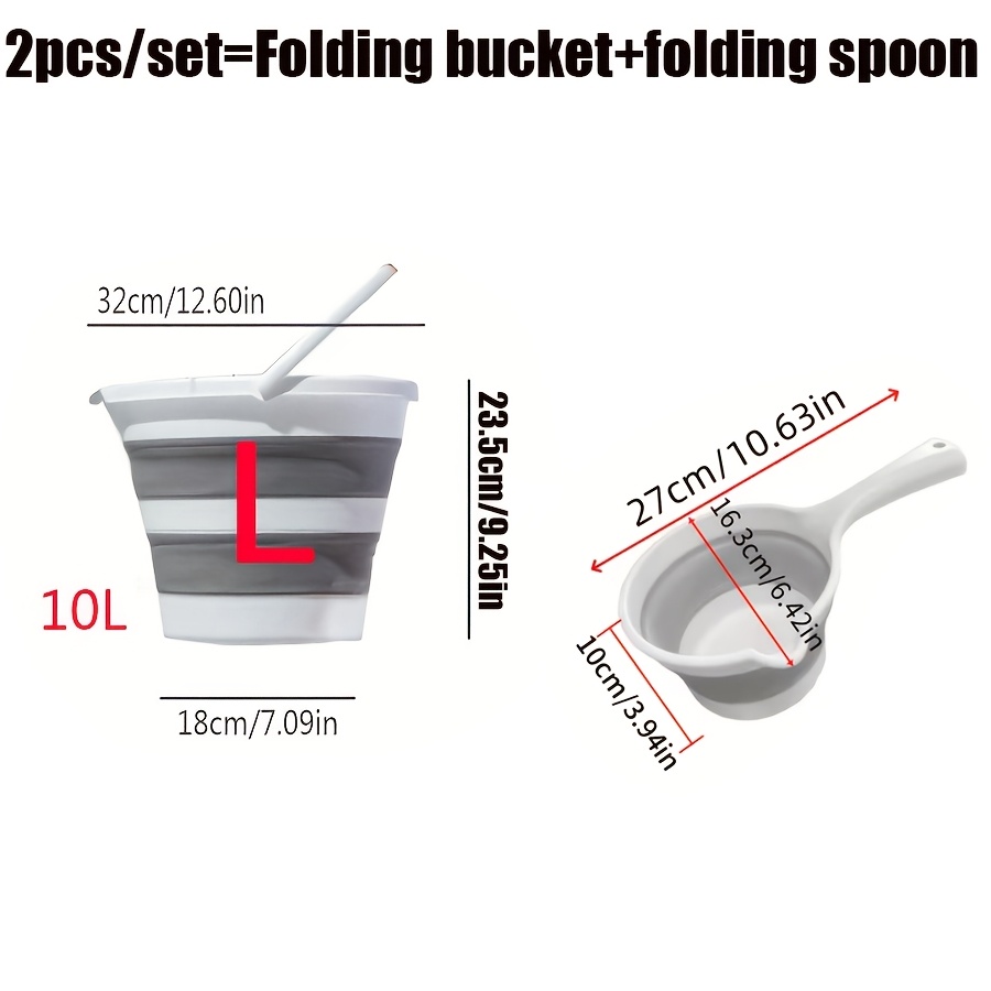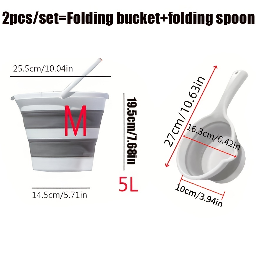2pcs Portable Foldable Water Bucket and Ladle - Collapsible Heavy-Duty Plastic Bucket Suitable for Outdoor Camping, Travel, Car Washing, Fishing, Bathroom - Compact Water Bucket for &, Plastic Cleaning
