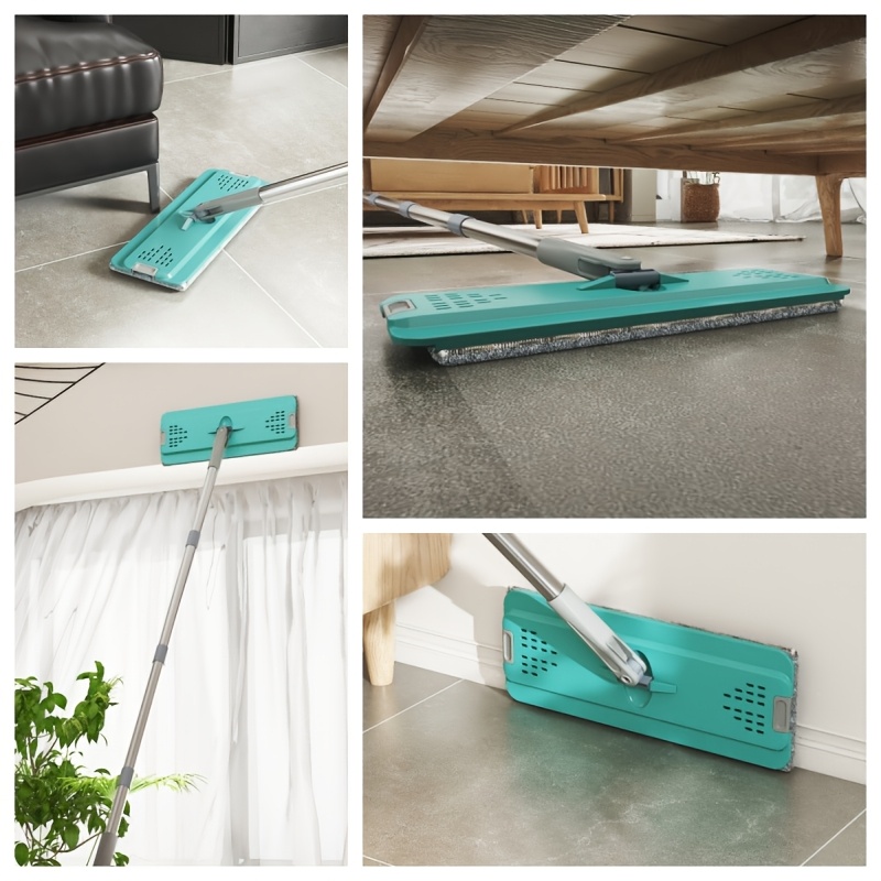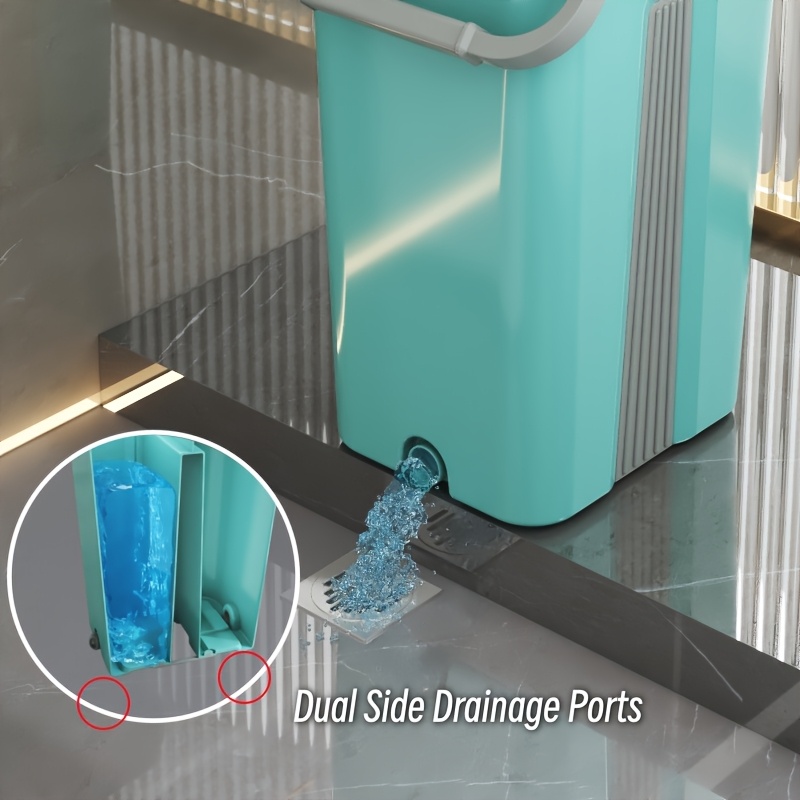 Extended Handle Hands-Free Flat Mop And Bucket Set, 4 Microfiber Pads Included, Large-Capacity Mop System, Dry & Wet Dual-Use Dust Mop for Hardwood, Tile, Marble & Wall Cleaning