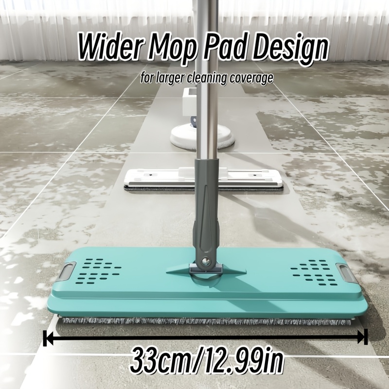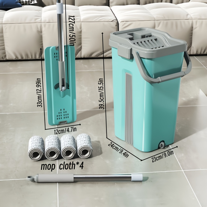 (12.99in) Large Panel Mop + Cleaning Bucket + Mop Pads*4